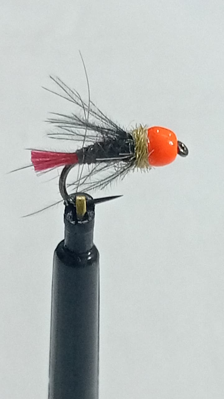 Orange tungsten red tail Black CDC Perdigon nymph (price for 12 flies)